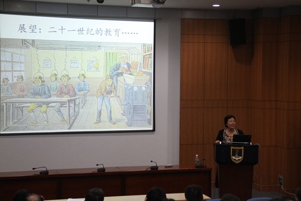 6月20,“名师论坛”系列教学培训第五场由北京大学郭文革教授作了“互联网:一个全新的教育生态环境——兼谈MOOC、微课、翻转教学与混合式教学”的专题讲座。来自全校近200名教师参加了本次讲座。郭教授系统分析了国内外网络教学的现状,对教育的“四要学说”(教育者、受教育者、教学资源、教育交流工具)作了精彩的论述,提出不管是MOOCs还是“翻转课堂”等“四要学说”的核心真正要素其实就是“网上交互活动”。郭教授的讲授深入浅出,形象生动,对我校网络课程建设和网络教学起到了积极地推动作用。