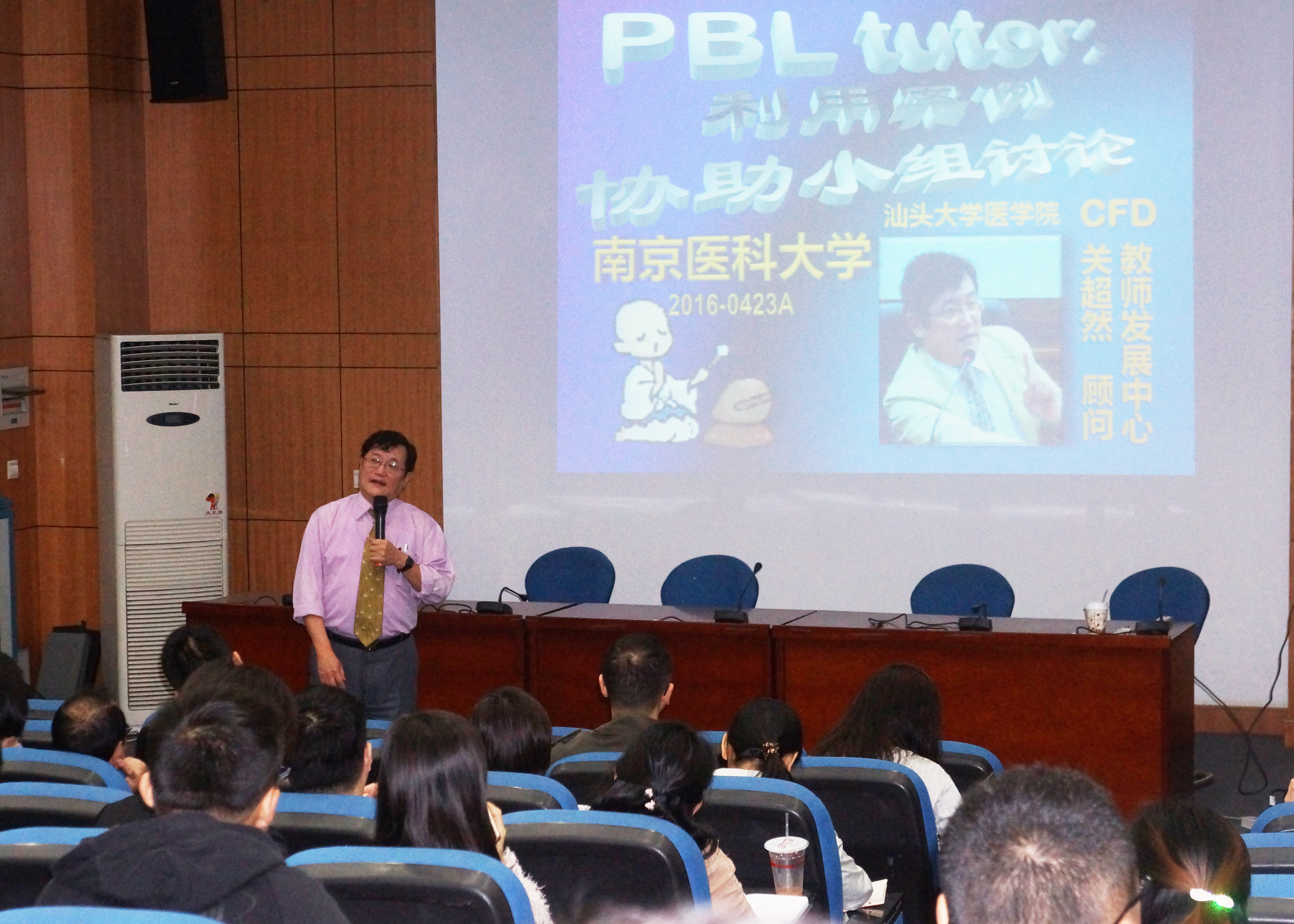 2016年4月23至24日,在教师发展中心的组织下,完成了第第五期PBL导师培训班第一轮培训工作。来自全校10个学院的102名老师全程参与了为期两天的培训班学习,培训由国际知名的PBL专家加拿大McMaster大学关超然教授全程主导。