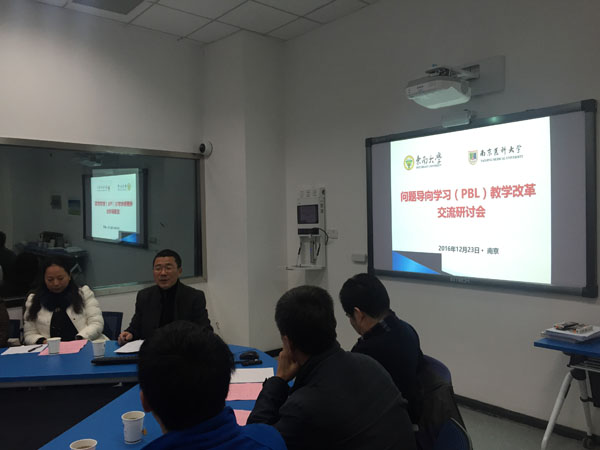 2016年12月23日下午,东南大学与南京医科大学问题导向学习(PBL)教学改革交流研讨会在学海楼举行。东南大学教务处王栓宏副处长、医学院王立新副院长及8位PBL骨干导师,教务处喻荣彬副处长及20余位PBL导师代表参加了研讨会。东南大学王栓宏副处长主持了会议。