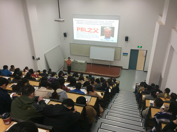 培训过程中,2015级临床医学专业7名学生在关超然教授的主导下进行了3个学时的PBL模拟示范。在完成小组学习后,参与培训的老师和学生进行了充分的交流沟通。师生们一致表示乐于参与这种情境化、人性化、平等化以及整合化的案例式学习,有效地激发了学生的学习兴趣,促进学生的学习主动性,提高学生的批判性思维能力、协作沟通能力、演绎推理的临床思维能力、提出问题、分析问题和解决问题等能力;同时,PBL学习模式契合学生“早临床、多临床、反复临床”的教学改革要求,促进了学生专业素养和实践能力的提升。