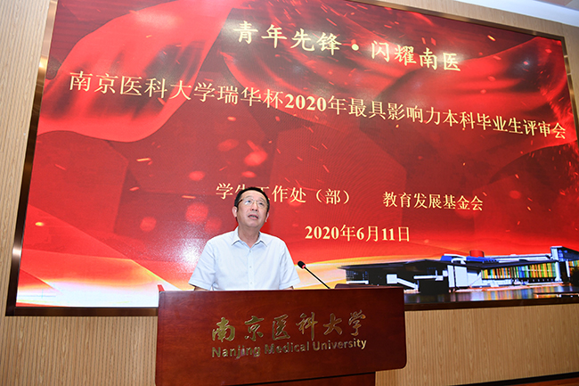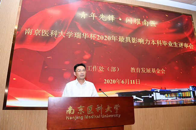 季勇副校长在讲话中对中瑞华慈善基金会表示感谢,对获奖同学表示祝贺,对2020届毕业生表达了三点希望:希望大家在校期间发挥好榜样示范作用,带动周围同学健康成长,形成校园影响力;希望同学们毕业后继续秉承南医精神,担当作为,拓展社会影响力;希望同学们一生坚守平常之心,不断超越,追求卓越,铸就终身影响力。