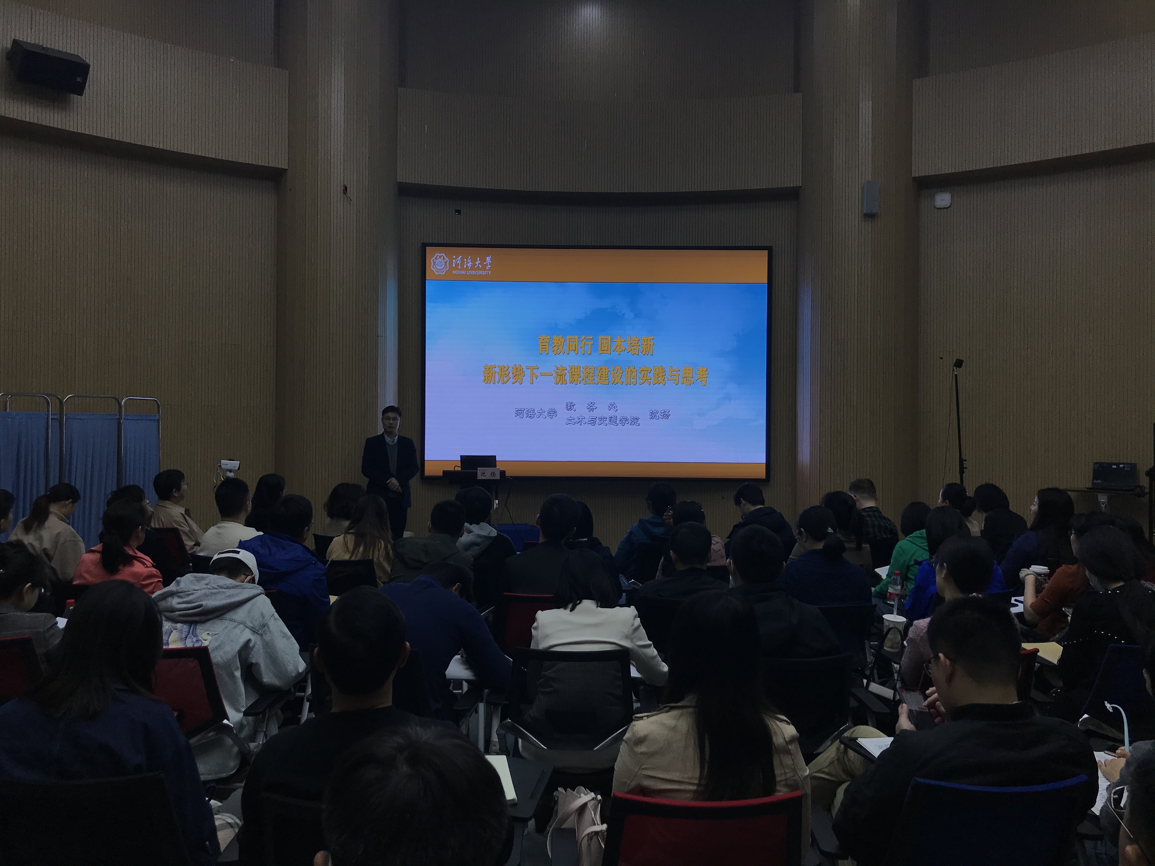 根据天元教学论坛系列讲座安排,11月3日,河海大学教务处处长沈扬教授在学海楼D209会议室做了 “育教同行 固本培新——新形势下一流课程建设的实践与思考”的专题讲座,各学院近100名教师参与了讲座。讲座由教务处副处长季旻珺教授主持。