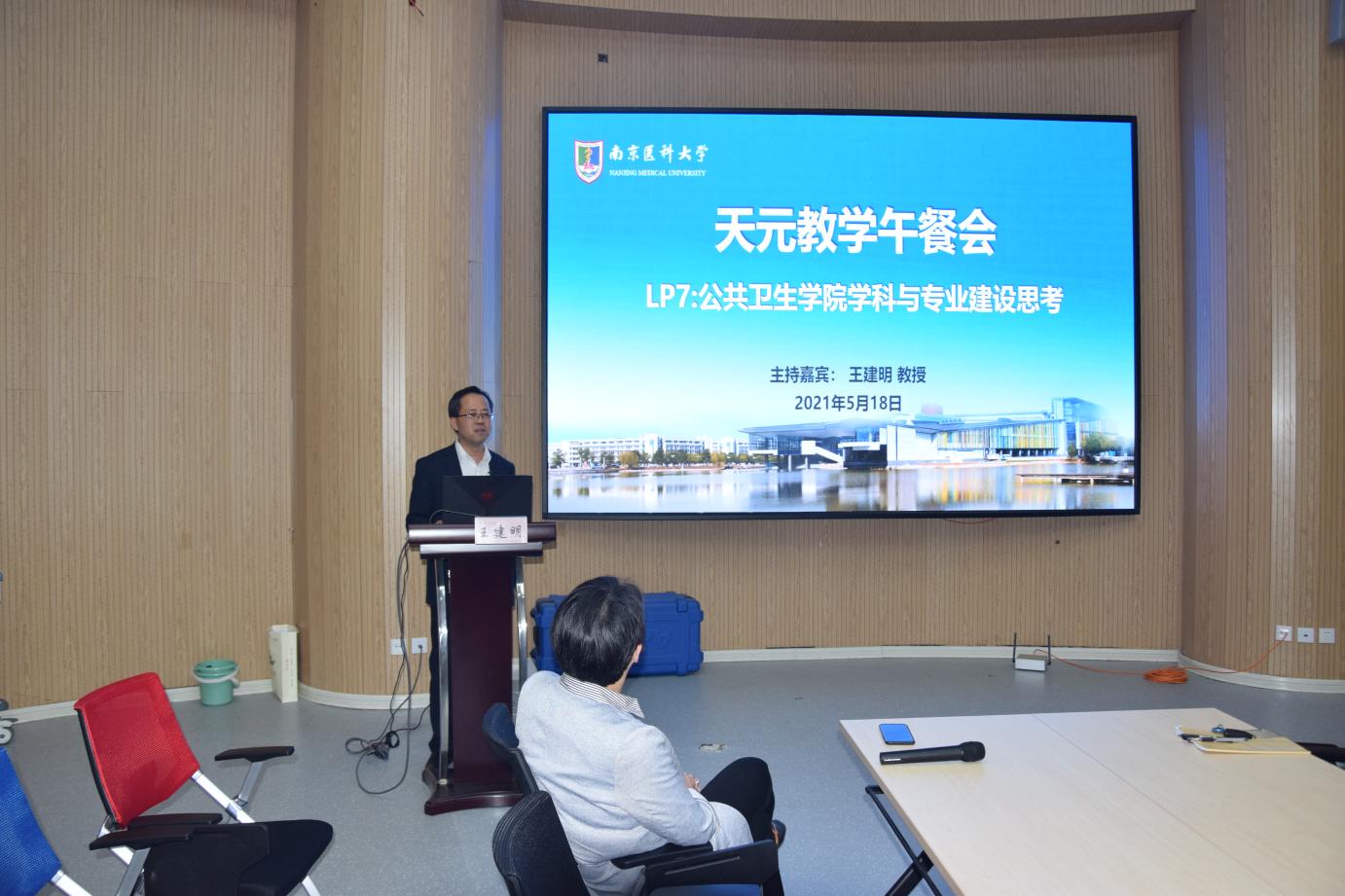 为进一步推进教育教学内涵建设,不断提升教学质量,5月18日,第七期天元教学午餐会邀请公共卫生学院院长王建明教授做主题发言,来自各学院的学系/教研室主任、教学秘书约50人参会,教务处季旻珺副处长主持会议。