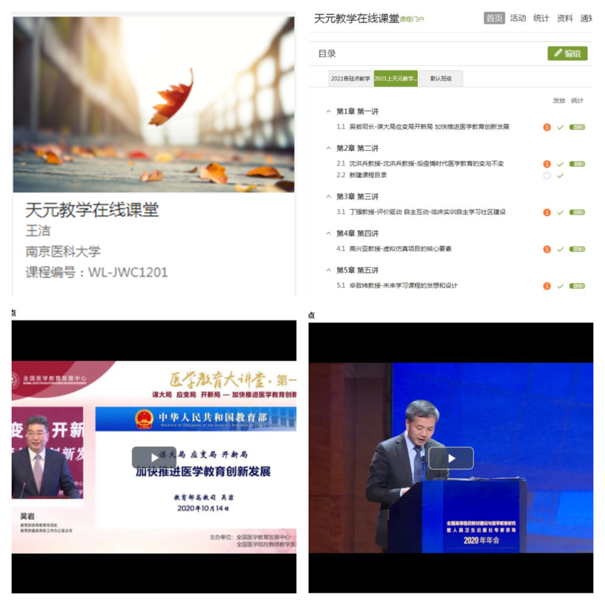 第一期天元教学在线课堂学习内容包括:教育部吴岩司长的《谋大局、应变局、开新局——全面推进医学教育创新发展》,沈洪兵院士的《后疫情时代医学教育的变与不变》,丁强教授的《评价驱动-自主互动-临床实训自主学习社区建设》,高兴亚教授的《虚拟仿真项目的核心要素》以及辛致炜教授的《未来学习课程的发想和设计》等系列专题讲座和主题报告。广大青年教师通过自主学习,在线视频反复看、练习题、谈心得、思体会、认真记录培训内容,圆满完成了本次的培训学习。
