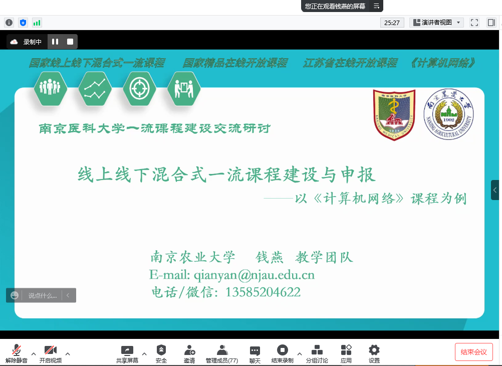 最后,钱燕副教授与参会教师分享了线上线下混合式一流课程申报的心得体会,为我校教师申报一流课程提供了宝贵的经验和实践指导。