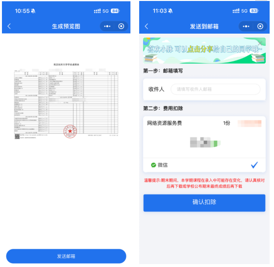 4.生成预览图,核实内容后点击发送邮箱,填写邮箱地址并支付相应费用,文件将发送至指定邮箱,若未收到邮件可以在申请记录中申请重新发送,如遇问题可联系客服反馈。