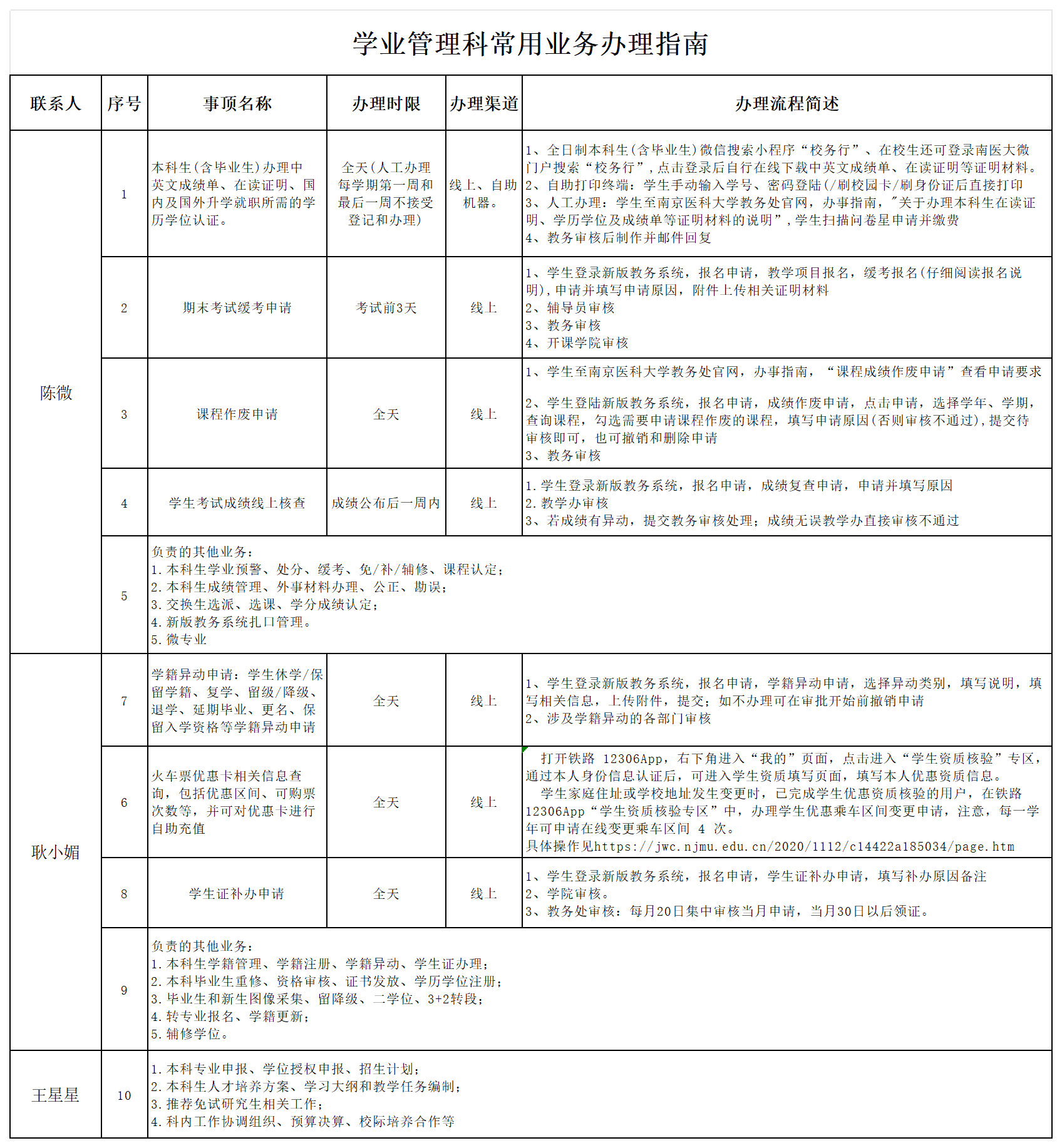 由于学业管理科的部分业务与教师、学生联系紧密,为高效办理、方便师生,特整理以下业务指南。