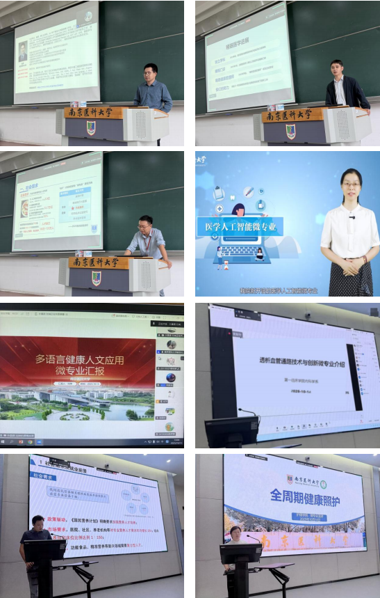 宣讲会分两场,以线上线下相结合形式开展。来自药学院、第一临床医学院、生物医学工程与信息学院、外国语学院、公共卫生学院、护理学院、儿科学院等单位的11个微专业项目负责人参与了宣讲,系统介绍了其培养目标、课程设置、教学资源与发展前景等。