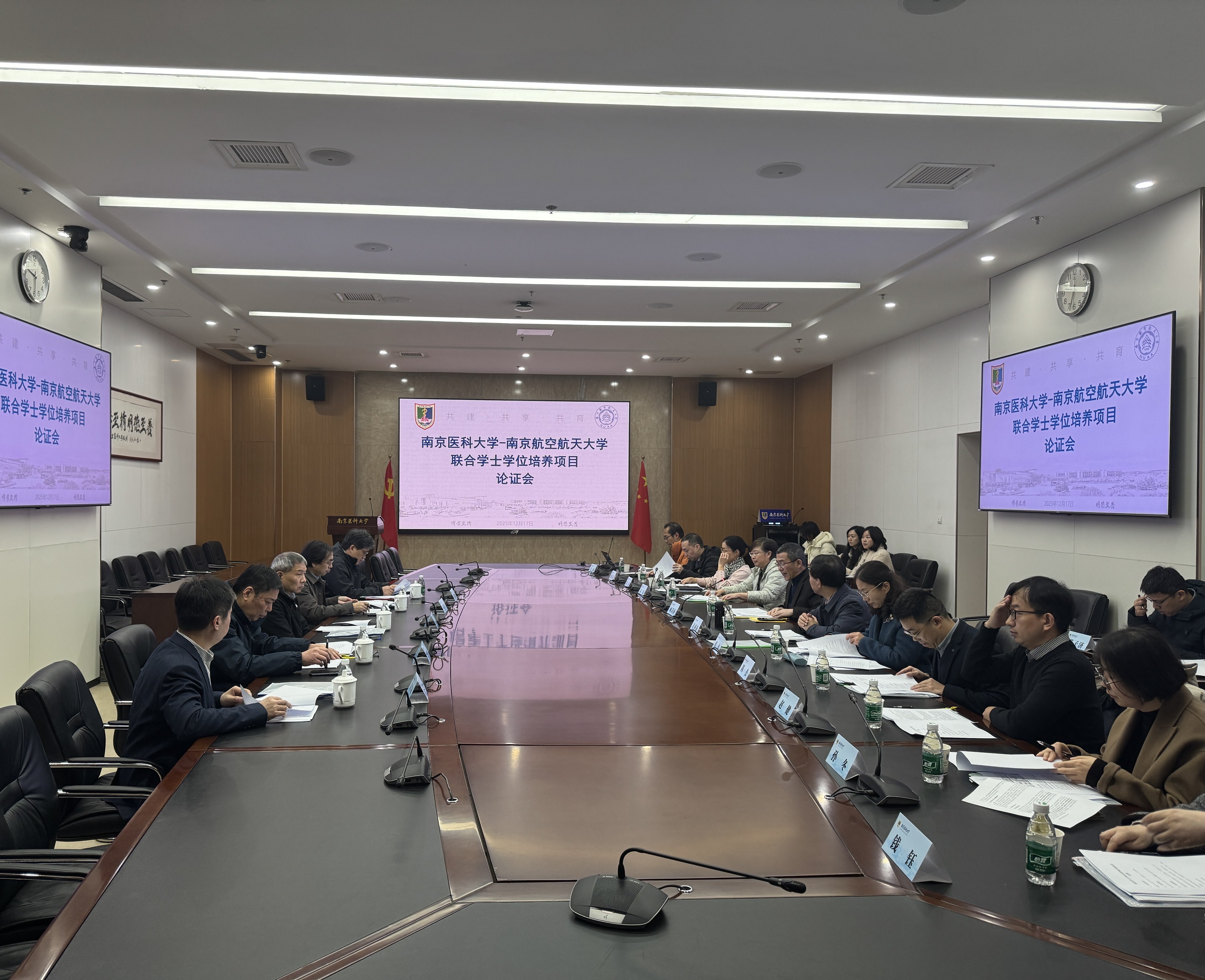 12月17日上午,南京医科大学与南京航空航天大学联合学士学位培养项目论证会在南京医科大学江宁校区举行。论证会特邀东南大学教授、生物医学工程专业教学指导委员会原主任委员万遂人担任评审专家组组长,成员包括浙江大学生物医学工程与仪器科学学院生物医学工程研究所所长刘清君、中国药科大学理学院院长唐伟方、南京航空航天大学人工智能学院院长张道强、南京医科大学原教务处处长高兴亚。两校教务部及相关院系负责人共同参会,就联合学士学位培养方案进行深入论证。
